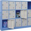 Tủ sắt để đồ sơn tĩnh điện gồm 18 khoang cánh mở, mỗi cánh có 01 khóa locker và 01 núm tay nắm.
