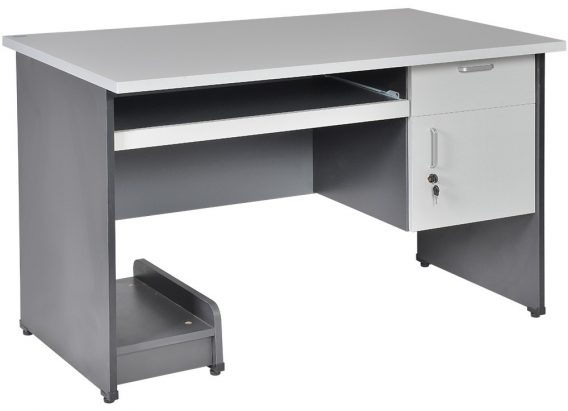 Bàn máy tính hộc liền có ngăn kéo và cánh gỗ mở, có 1 kệ để CPU và bàn phím.