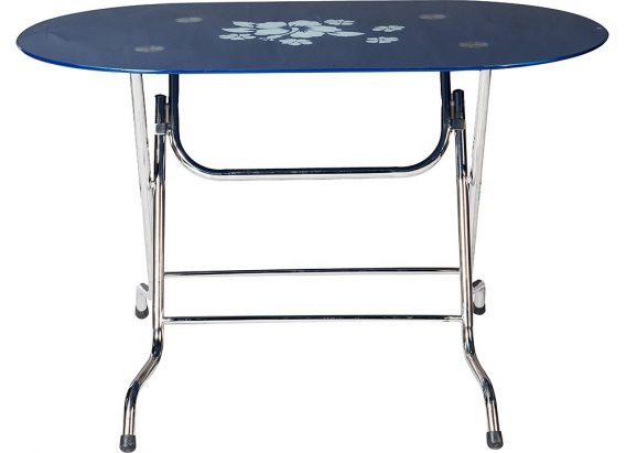 Bàn ăn chân gấp khung Inox toàn bộ, mặt kính cường lực sơn màu. Chân bàn sử dụng ống inox kích thước 25.4mm.