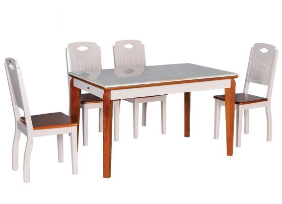 Bộ bàn ghế ăn khung gỗ tự nhiên phủ sơn cao cấp, mặt bàn sử dụng chất liệu đá tự nhiên với bề mặt được tạo vân theo công nghệ hiện đại tạo cho sản phẩm sự sang trọng và đẳng cấp.