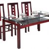 Bộ bàn ghế ăn cao cấp chất liệu gỗ tự nhiên tần bì, sơn màu hạt dẻ.
