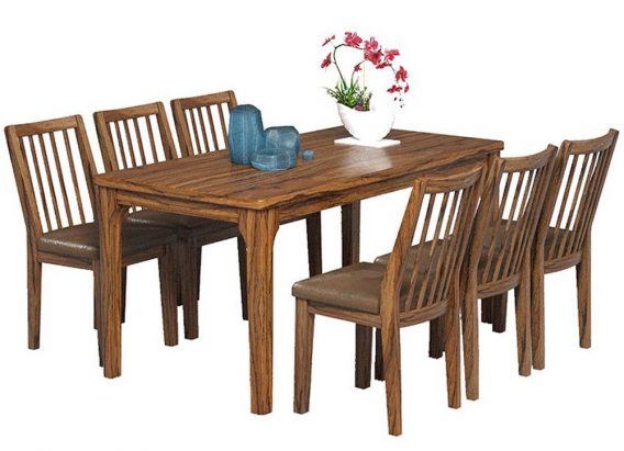 Bộ bàn ghế ăn cao cấp chất liệu gỗ tự nhiên tần bì, sơn màu hạt dẻ.