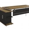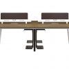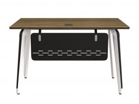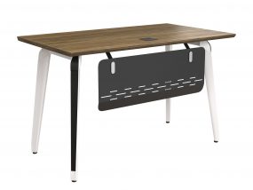 Bàn chuyên viên cao cấp mặt gỗ melamine vát cạnh 45 độ hai cạnh dài, yếm tôn đột lỗ trang trí, kết hợp chân bàn thép dập định hình sơn trắng kết hợp ốp đen