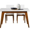 Ghế ăn khung gỗ phủ sơn trắng, tựa ghế được thiết kế hiện đại kết hợp đệm ghế tạo vân gỗ sang trọng.