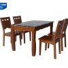 Bộ bàn ghế ăn kéo trượt thông minh sử dụng mặt kính cường lực sơn màu.