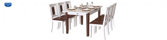 Bộ bàn ghế ăn kéo trượt thông minh sử dụng mặt kính cường lực sơn màu.