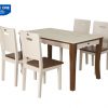 Bộ bàn ghế ăn khung gỗ tự nhiên phủ sơn cao cấp, mặt bàn sử dụng đá tự nhiên được tạo vân mang tới sự sang trọng và đẳng cấp.