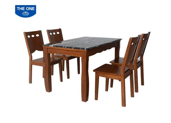 Bộ bàn ghế ăn khung gỗ tự nhiên phủ sơn cao cấp, mặt bàn sử dụng đá tự nhiên được tạo vân mang tới sự sang trọng và đẳng cấp.