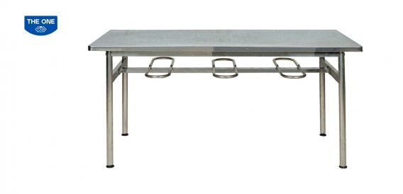 Bàn ăn khu công nghiệp sử dụng chất liệu Inox, chân bàn dùng ống tròn D38.
