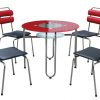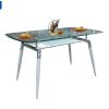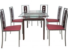 Bộ bàn ghế ăn khung thép mạ, mặt bàn kính cường lực và có ngăn nhỏ ở dưới.