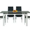 Bộ bàn ăn cao cấp chân Inox kết hợp khung thép sơn tĩnh điện. Phần mặt bàn sử dụng kính cường lực và có thể kéo trượt thay đổi chiều dài 2 đầu bàn từ 1300÷1800 mm.