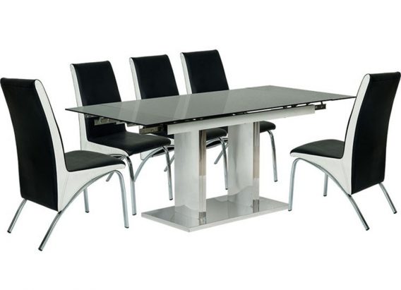 Bộ bàn ăn cao cấp chân Inox kết hợp khung thép sơn tĩnh điện. Phần mặt bàn sử dụng kính cường lực và có thể kéo trượt thay đổi chiều dài 2 đầu bàn từ 1300÷1800 mm.