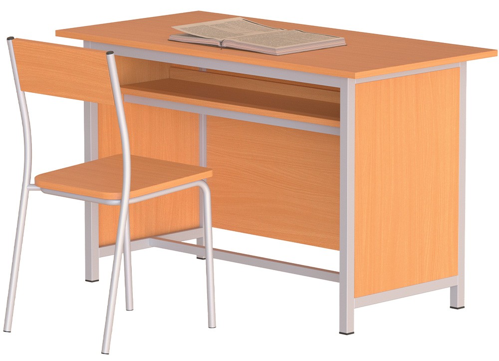 Bàn ghế giáo viên sử dụng gỗ melamine, khung thép sơn tĩnh điện.