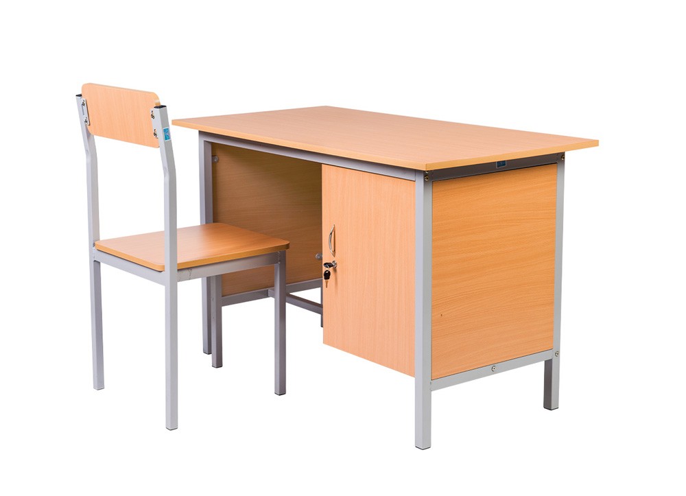 Bàn ghế giáo viên sử dụng gỗ melamine, khung thép sơn tĩnh điện.