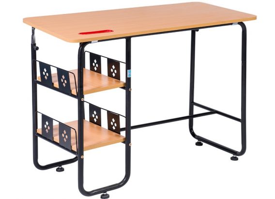 Bàn có các đợt để đồ và mặt bàn có thể điều chỉnh độ nghiêng.