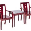 Đệm và tựa ghế bằng mút bọc vải, mặt bàn hình vuông.