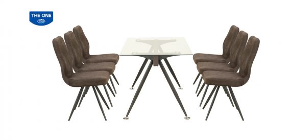 Bàn ăn cao cấp khung thép sơn tĩnh điện, mặt bàn sử dụng kính cường lực.