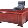 Bàn lãnh đạo sơn PU cao cấp mặt lượn cong, có tấm PVC trang trí.