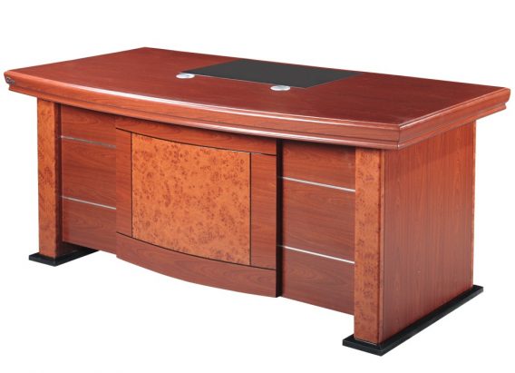 Bàn lãnh đạo sơn PU mặt lượn cong, có tấm PVC trang trí.