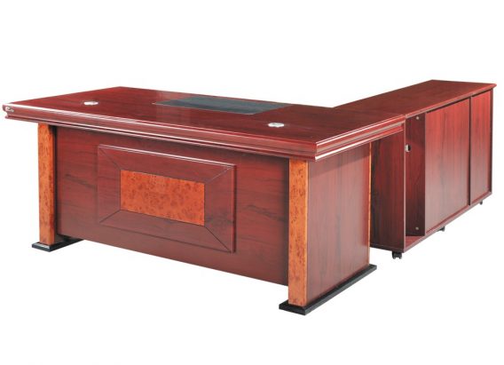 Bàn lãnh đạo sơn PU cao cấp mặt chữ nhật, có tấm PVC trang trí.