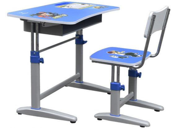 Bộ bàn ghế học sinh khung thép, mặt bàn bằng gỗ melamine in hình con giống.