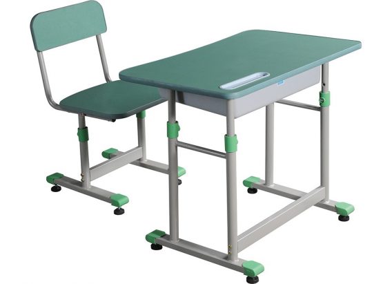 Bộ bàn ghế học sinh khung thép, mặt bàn và đệm tựa ghế gỗ melamine.