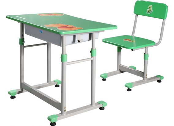 Bộ bàn ghế học sinh khung thép, mặt bàn và đệm tựa ghế gỗ sơn Pu con giống.