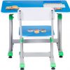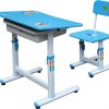 Mặt bàn và đệm tựa ghế bằng gỗ Melamine, bàn có ngăn để sách và có thể điều chỉnh độ nghiêng của mặt bàn phù hợp với tư thế ngồi học.
