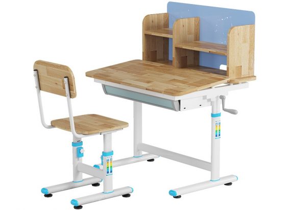 Bàn có ngăn kéo nhựa tiện dụng để đồ dùng học tập, phần giá sách gỗ kết hợp tấm hậu tôn sơn.