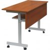 Bàn hội trường khung thép sơn tĩnh điện có bánh xe, mặt bằng gỗ Melamine màu vàng.
