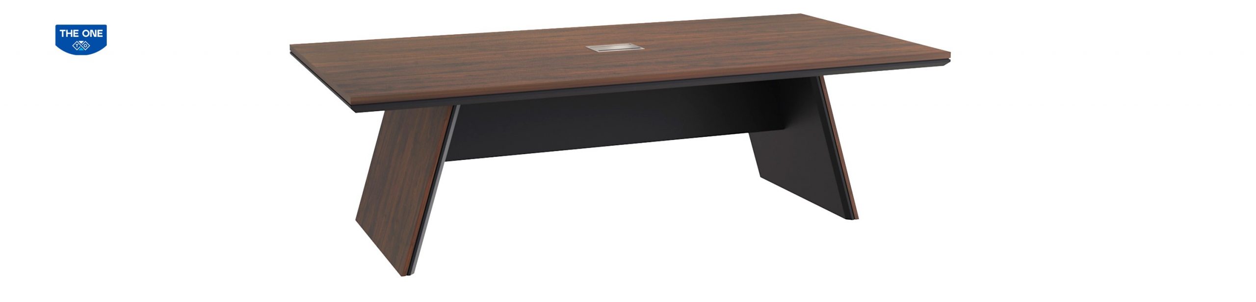Bàn họp gỗ công nghiệp cao cấp phủ melamine, chân bàn thiết kế vát nghiêng kết hợp ốm sơn màu xám.