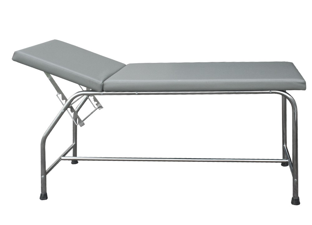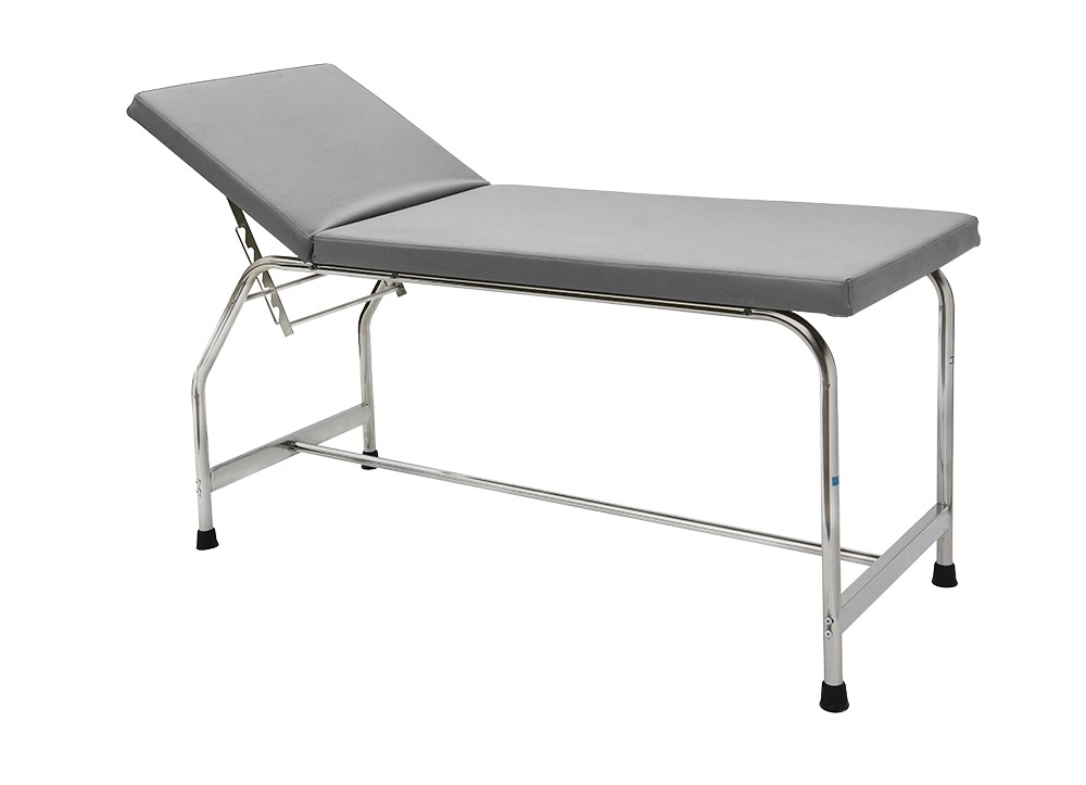 Bàn khám bệnh toàn bộ khung bằng Inox ống tròn, đệm được chia làm 2 phần gồm: phần gối đầu và phần thân người nằm.