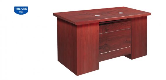 Bàn lãnh đạo cấp trung mặt hình chữ nhật, có ngăn kéo, bàn phím và khoang để CPU.