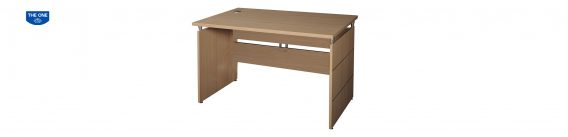 Bàn làm việc gỗ Melamine, yếm gỗ chia 2 tấm liên kết bằng trụ inox.