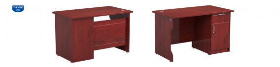 Bàn nhân viên sơn PU mặt hình chữ nhật có hộc 1 ngăn kéo và 1 cánh mở.