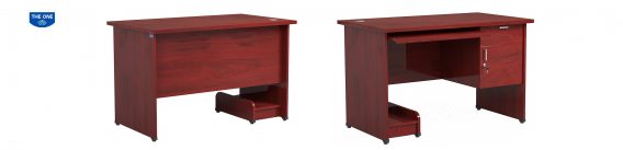 Bàn nhân viên sơn PU mặt hình chữ nhật có hộc treo 1 ngăn kéo, một cánh mở.