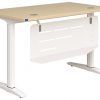 Bàn làm việc có yếm tôn trang trí, mặt bàn bằng melamine, có vát cạnh 45 độ phía người ngồi