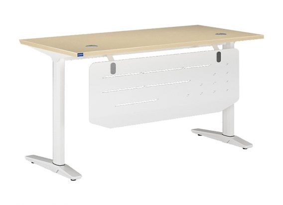 Bàn làm việc có yếm tôn trang trí, mặt bàn bằng melamine, có vát cạnh 45 độ phía người ngồi