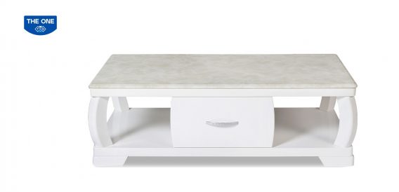 Bộ bàn Sofa cao cấp chân gỗ tự nhiên kết hợp mặt đá nhân tạo và có 1 ngăn kéo ở giữa.