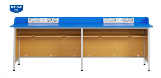 Bàn có trang bị 02 hộp điện tích hợp đồng hồ đo ampeke + vol kế AC & DC kèm ổ cắm điện tiện dụng.