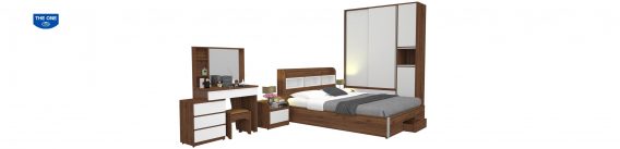 Bộ sản phẩm phòng ngủ người lớn, sử dụng chất liệu gỗ melamine cao cấp kết hợp giữa hai tông màu gỗ và trắng.