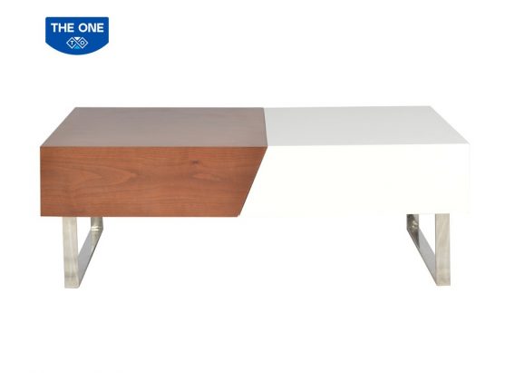 Bàn Sofa cao cấp khung Inox, mặt gỗ verneer óc chó kết hợp sơn bóng cao cấp. Mặt bàn có hệ ray trượt mở hộc để đồ.