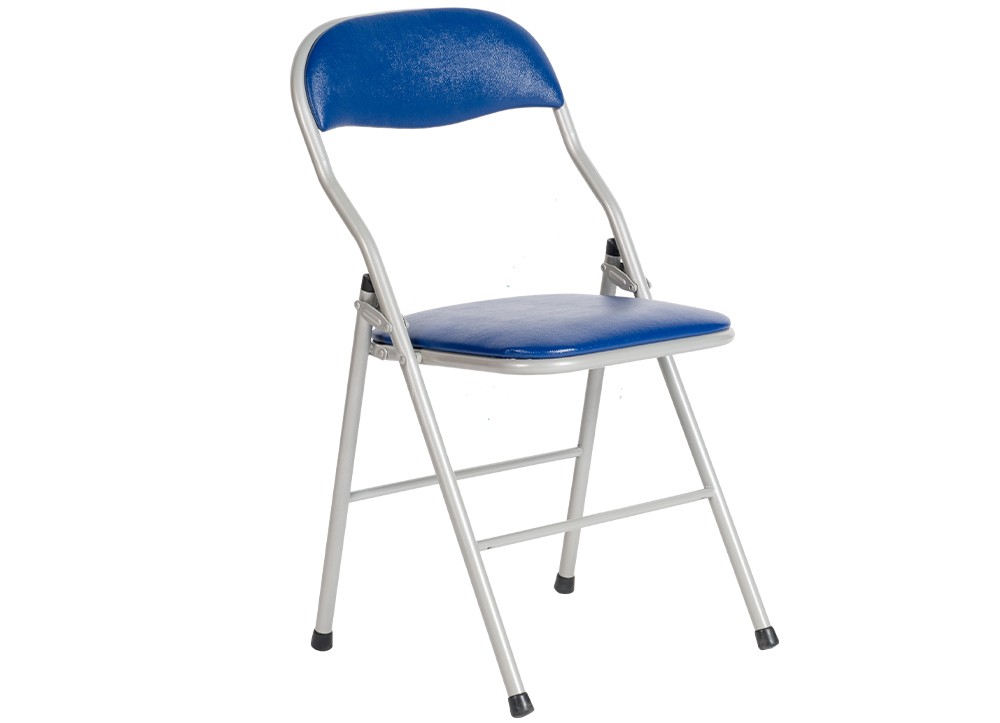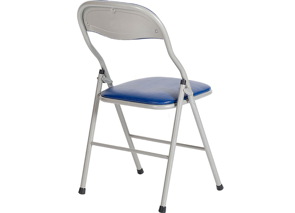 Ghế chân gấp khung thép, đệm tựa ghế bọc PVC.
