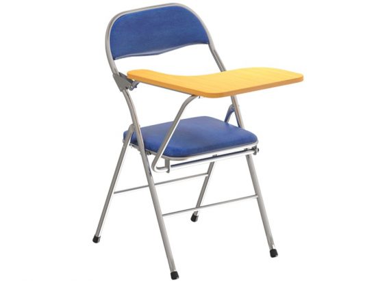 Ghế G01B chân gấp khung thép sơn tĩnh điện hoặc mạ , đệm tựa bọc PVC. Ghế có bàn viết gỗ công nghiệp