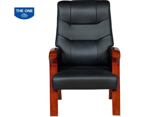 Ghế họp chủ tọa cao cấp khung sơn gỗ tự nhiên chân tĩnh, đệm tựa bọc da thật hoặc PVC.