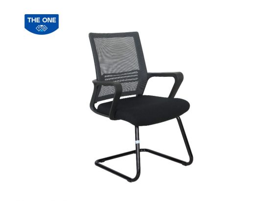 Ghế họp khung thép kết hợp tựa nhựa bọc lưới, đệm bọc vải, tay bằng nhựa.