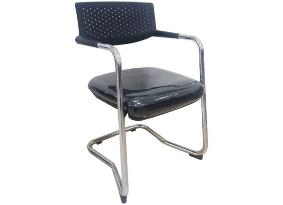 Ghế phòng họp tựa nhựa, đệm mút bọc vải lưới xốp có ốp đệm bằng nhựa.