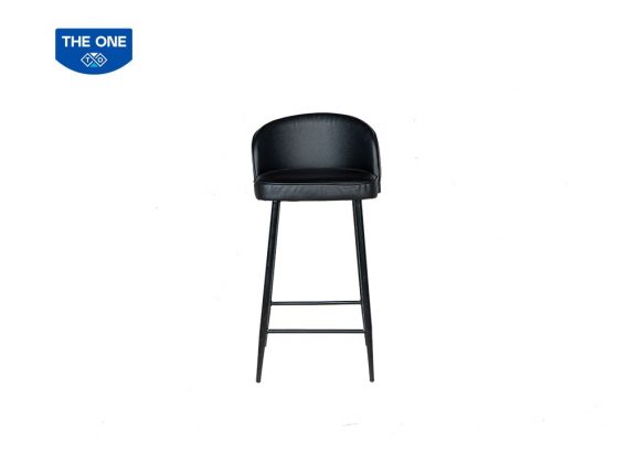 Ghế quầy bar sử dụng chân thép ống tóp sơn đen, đệm tựa ghế bằng mút bọc PVC.
