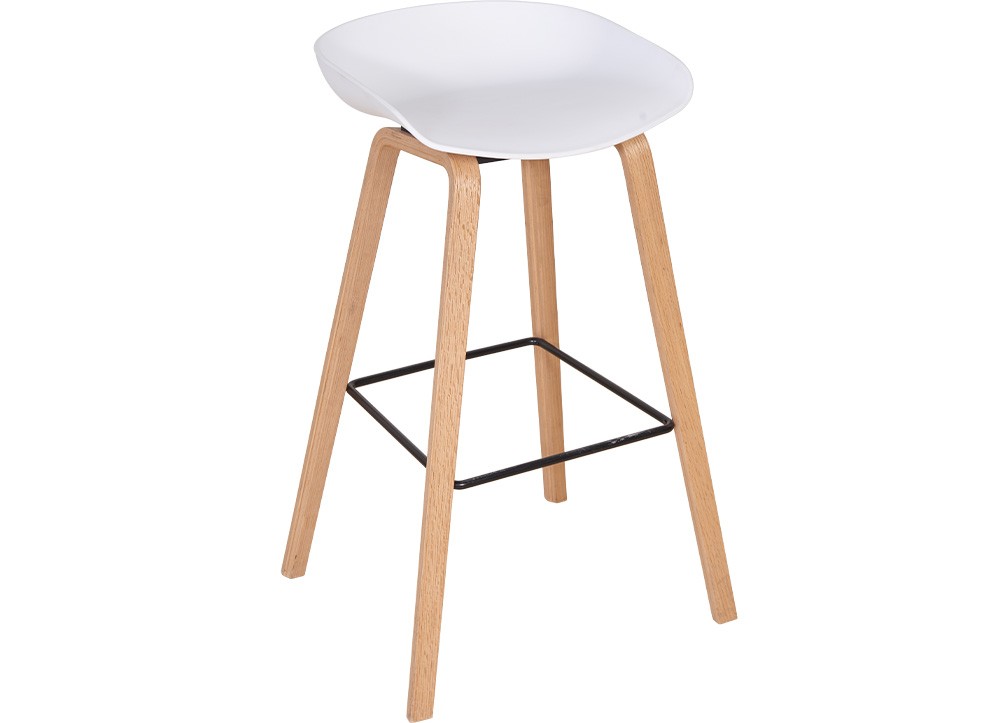 Ghế quầy bar khung gỗ kết hợp thép sơn tĩnh điện, đệm ghế bằng nhựa.