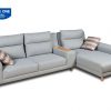 Bộ sofa góc cao cấp bọc vải nỉ, tay ghế được ốp gỗ tự nhiên tạo sự sang trọng cho sản phẩm